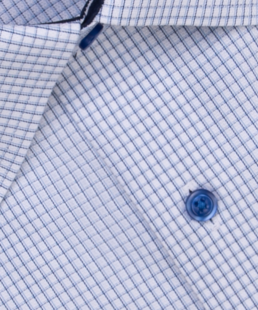 Blue Check Contrast Trim Dress Shirt