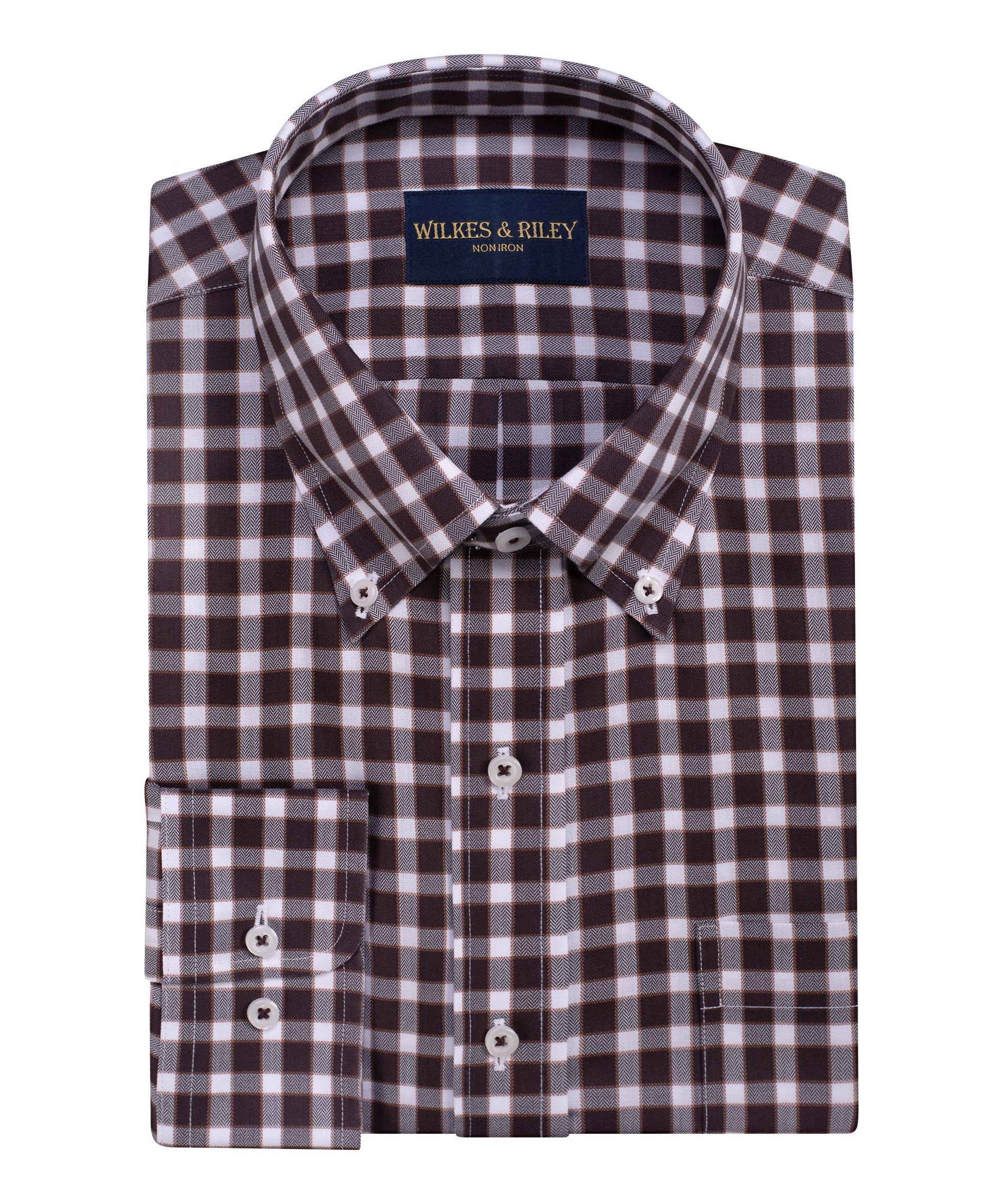 Brown Herringbone Check Button-Down Collar Non-Iron Sport Shirt