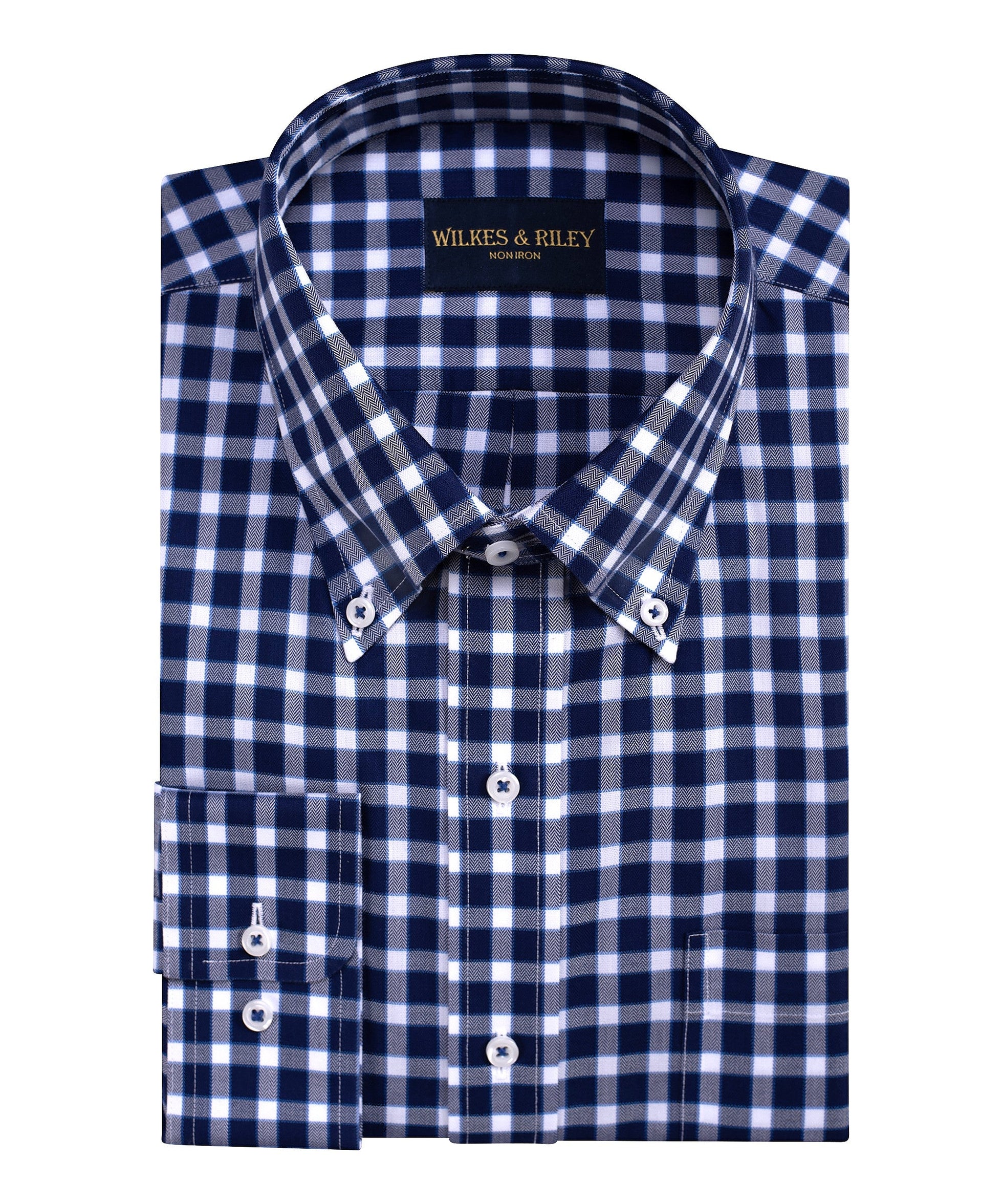 Navy Herringbone Check Button-Down Collar Non-Iron Sport Shirt