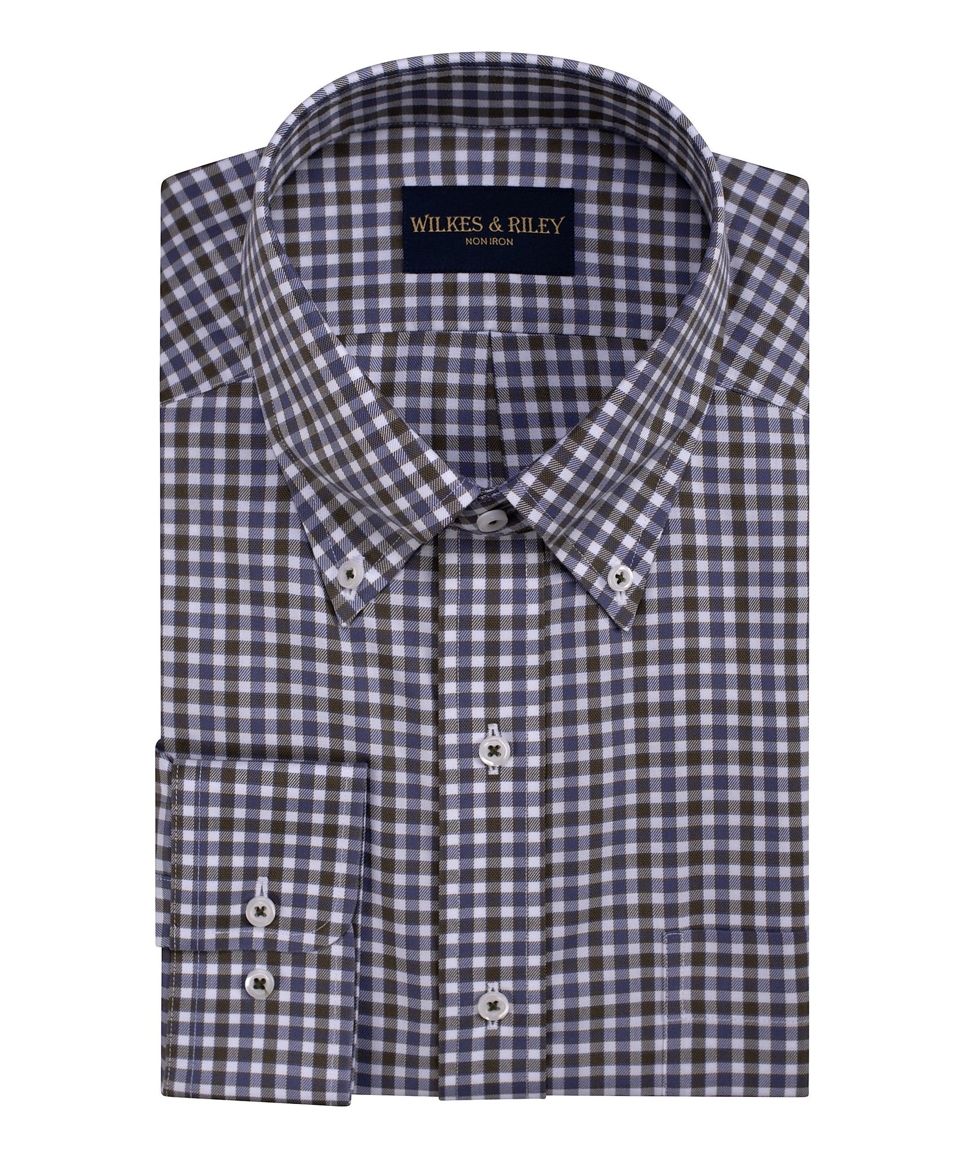 Green/Blue Twill Check Button-Down Collar Non-Iron Sport Shirt