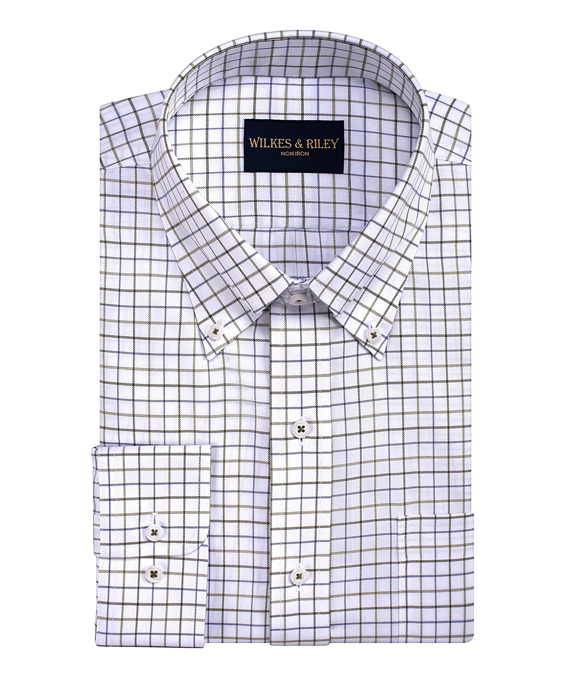 Olive /Navy Twill Check Button-Down Collar Non-Iron Sport Shirt